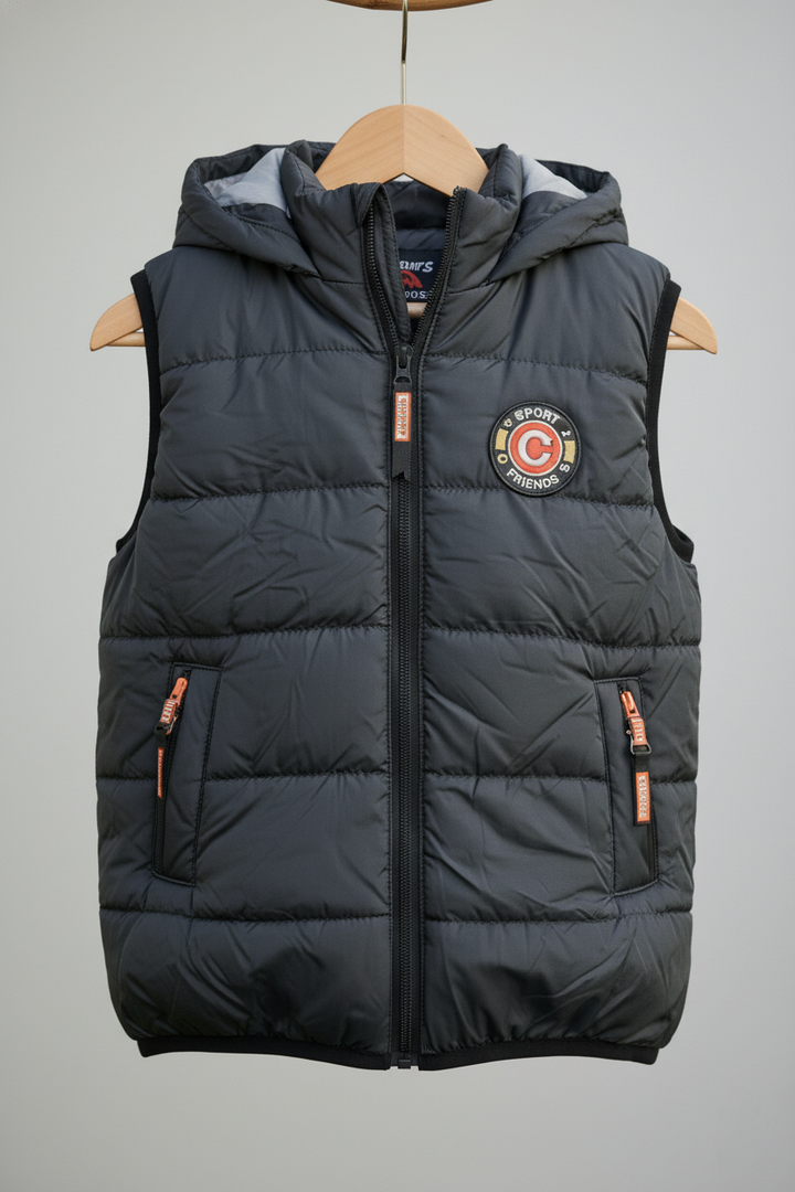 Kids Girls/Boys Grey Padded Sleeveless Hooded Jacket – Winter Wear